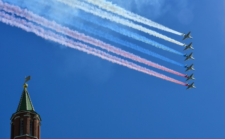 Des défilés militaires ont eu lieu dans les autres villes russes tandis qu'une cérémonie était organisée dans la base militaire russe de Hmeimim en Syrie, où Moscou soutient le président syrien Bachar al-Assad. De nombreuses nouveautés militaires russes ont été présentées au défilé, notamment les chasseurs de cinquième génération Su-57. Un véhicule blindé nommé "Terminator" ou des avions Mig-31 portant le missile hypersonique "Kinjal" ("Poignard") qualifié d'invincible en mars par M. Poutine, ont également participé à cette parade.