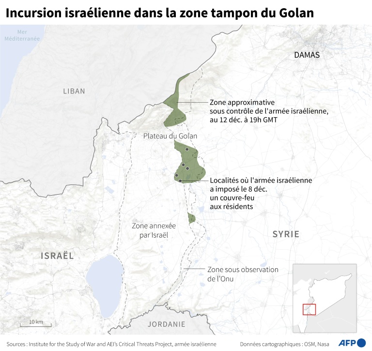 Israël, voisin sud de la Syrie, a mené de nouvelles frappes sur des "sites militaires de l'ancien régime" à Damas et sa banlieue, détruisant un institut scientifique et un "aéroport militaire", selon l'Observatoire syrien des droits de l'homme (OSDH).