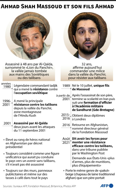Ahmad Massoud a exhorté à la résistance du Panchir, mais demandé un soutien international, notamment des armes et des munitions aux Etats-Unis, dans une tribune publiée par le Washington Post. L'ancien vice-président afghan Amrullah Saleh, ennemi intime des talibans, s'est également réfugié dans le Panchir.