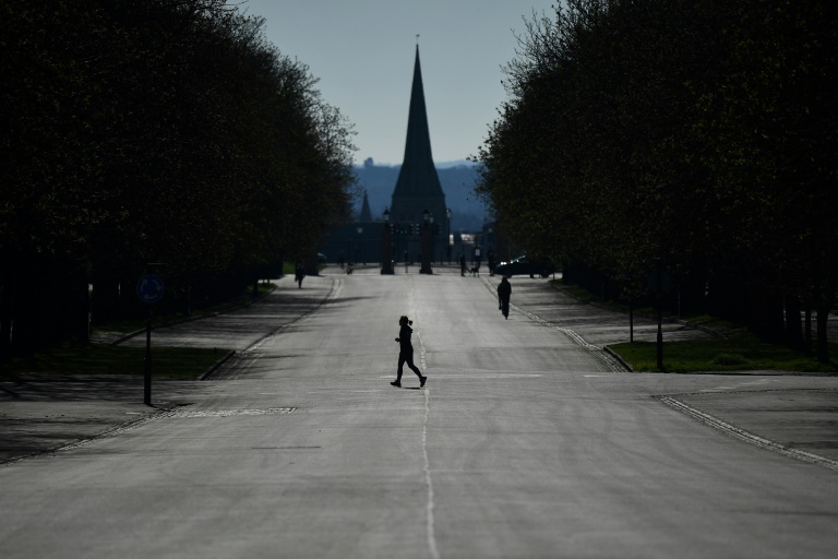 Une joggeuse britannique court en solo dans un Greenwich Park figé, au premier jour du confinement en Grande-Bretagne.