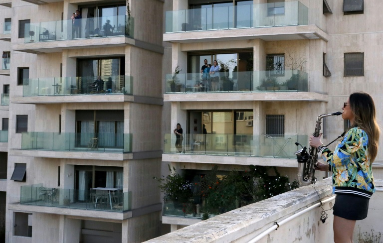 La saxophoniste israélienne Yarden Klayman joue pour ses voisins du quartier de Basel à la suite de l'annulation de son concert après l?interdiction des déplacements non essentiels.