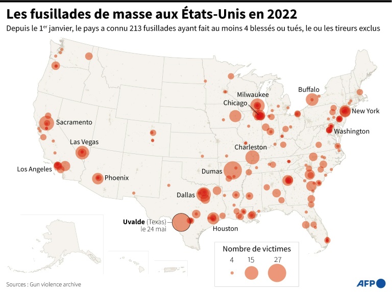 Une chape de plomb recouvrait mercredi la ville d'Uvalde, au Texas, où les habitants étaient partagés entre deuil, effroi et stupeur au lendemain du massacre de 19 enfants et deux enseignants dans une école primaire.