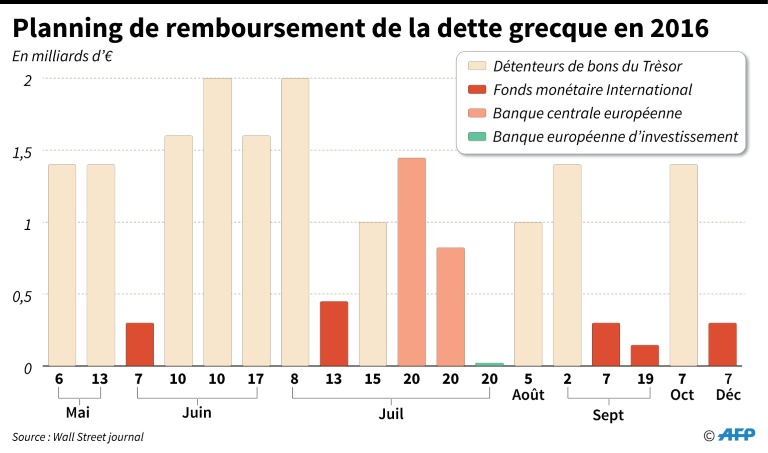 La Grèce a besoin d'un accord de la zone euro pour que de nouveaux fonds puissent être débloqués. Le pays a reçu à ce jour 21,4 milliards d'euros, et doit faire face à une échéance de remboursement de près de 2,2 milliards à la Banque centrale européenne (BCE) le 20 juillet.