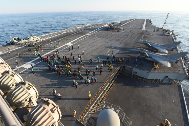 "Aujourd'hui, on en est à 130 appontages. Cette nuit, on en fera sans doute une soixantaine", commente du haut de l'îlot le capitaine de frégate Steven Thomas, "air boss" (chef aviation) à bord du bâtiment, baptisé en l'honneur de l'ancien président George Bush père, figure de l'aéronavale américaine.