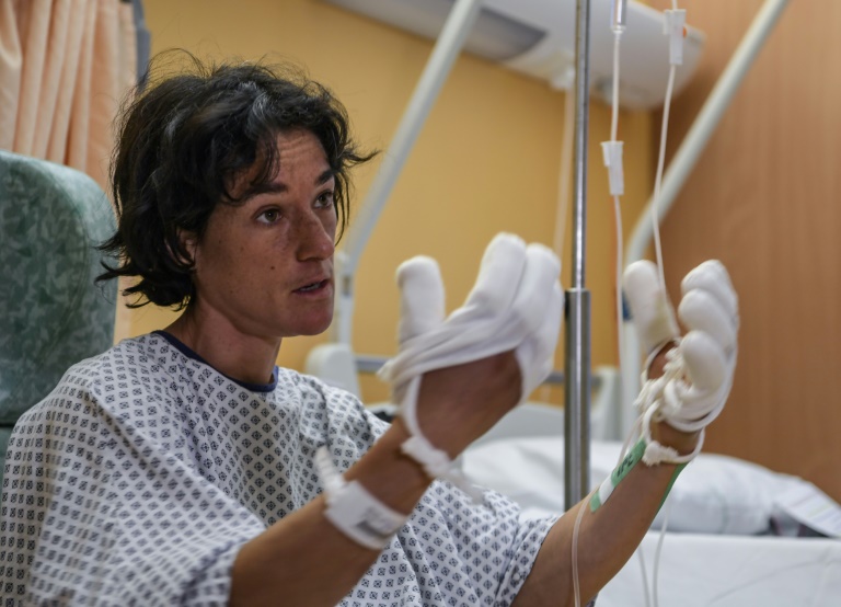 A Sallanches (Haute-Savoie, alpes françaises), où elle est soignée pour des gelures graves aux deux mains et au pied gauche, ce petit bout de femme - 1m56 pour 43 kg en retour d'expédition - relate sobrement, techniquement, son ascension du Nanga Parbat (8.126 m) au Pakistan - une première pour une femme en hiver, sans oxygène ni sherpa.