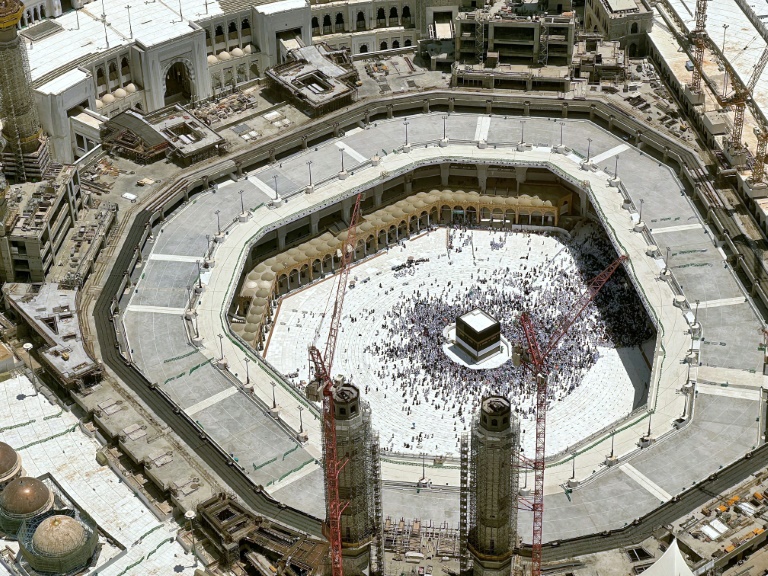 A la Grande Mosquée de La Mecque, les pèlerins doivent effectuer le "tawaf", soit les circonvolutions autour de la Kaaba, une grande structure cubique drapée d'un tissu noir brodé d'or, vers laquelle les musulmans du monde entier se tournent pour prier.