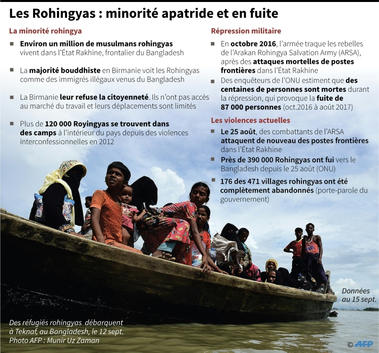 Depuis que la nationalité birmane leur a été retirée en 1982, ils sont soumis à de nombreuses restrictions : ils ne peuvent pas voyager ou se marier sans autorisation, ils n'ont accès ni au marché du travail ni aux écoles et hôpitaux. La "persécution" de cette minorité est "inacceptable", a réagi jeudi le secrétaire d'Etat américain Rex Tillerson.