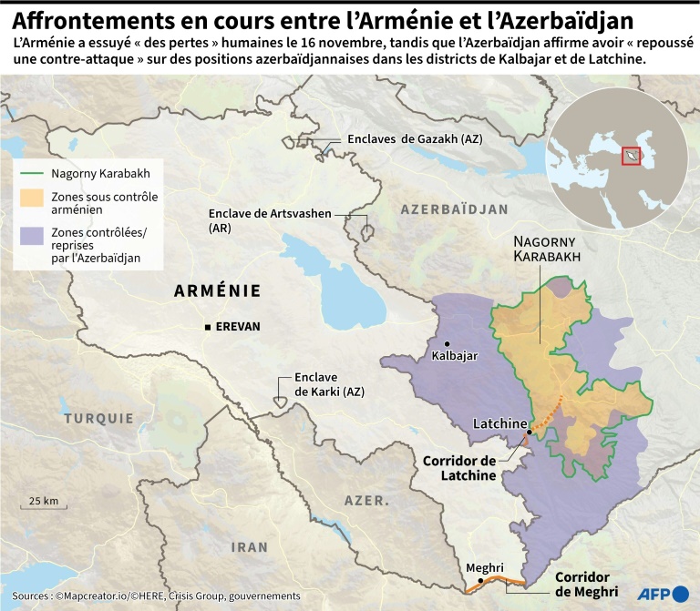Ces derniers événements illustrent l'équilibre précaire qui règne dans la poudrière du Caucase, presque un an jour pour jour après la fin d'un sanglant conflit de six semaines entre l'Azerbaïdjan et l'Arménie au Nagorny-Karabakh.
