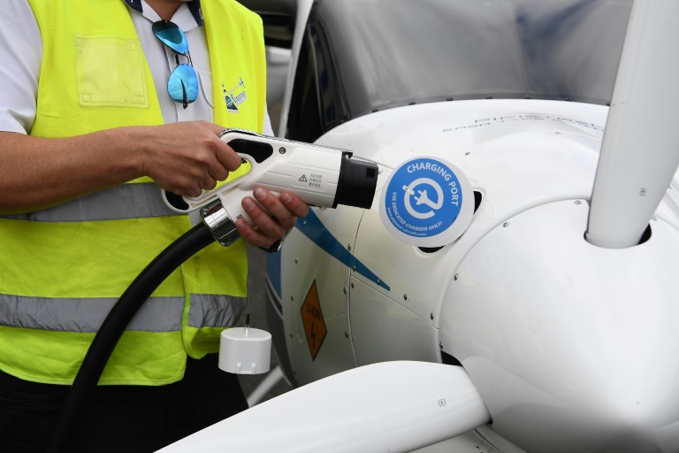 La société VoltAéro a ainsi lancé un avion hybride électrique de démonstration pouvant accueillir jusqu'à dix personnes. "Cet avion peut réaliser des vols de deux heures et demi", assure Jean Botti, PDG de la société basée près de Royan, venu présenter son aéronef à Brest. Il dit espérer une certification pour fin 2022. A plus long terme, les recherches portent sur la pile à combustible pour alimenter un moteur électrique en s'affranchissant des batteries: l'électricité serait produite à bord par la réaction chimique de l'oxygène prélevé dans l'air avec de l'hydrogène liquide embarqué dans des réservoirs.