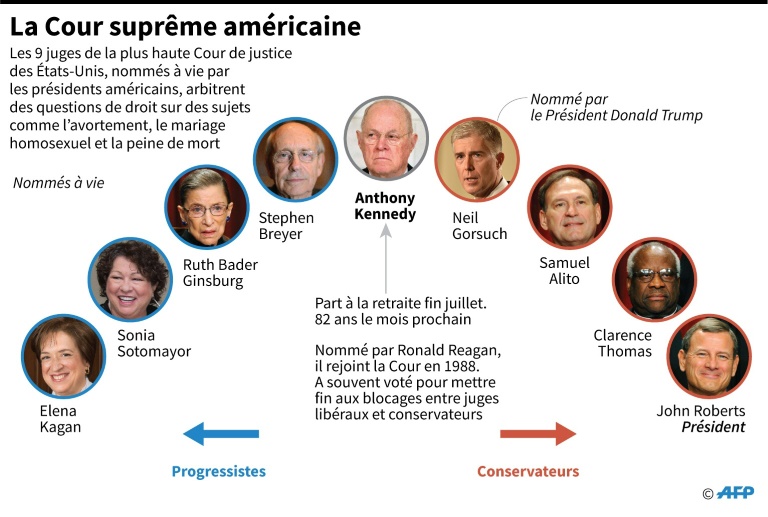 Ce magistrat jouait depuis trente ans un rôle d'arbitre au sein de la plus haute instance judiciaire américaine, se rangeant tantôt du côté des quatre juges conservateurs, tantôt du côté des quatre progressistes, notamment sur l'avortement. S'il le remplace par un conservateur, Donald Trump fera basculer l'équilibre de la Cour suprême, qui tranche notamment les grands sujets de société.