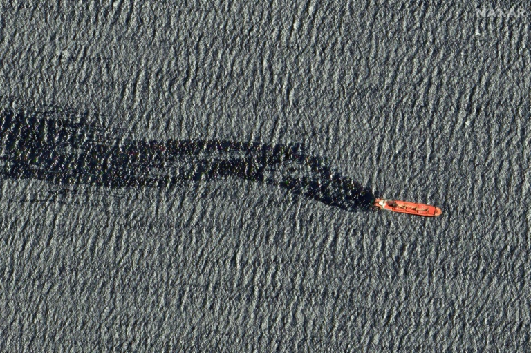 Des images satellites partagées par Maxar Technologies et publiées par l'AFP montrent que du fioul s'échappe du navire.