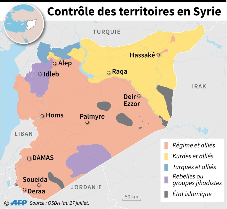 D'après l'Observatoire syrien des droits de l'Homme (OSDH), les rebelles contrôlent aujourd'hui moins de 10% du territoire et le régime plus de 60%.