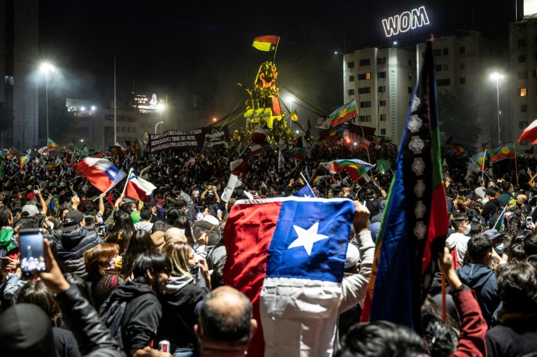 Un an jour pour jour après une mobilisation historique dans le centre de Santiago qui avait réuni 1,2 million de personnes pour une société plus égalitaire, des milliers de Chiliens sont descendus dimanche à nouveau dans la rue fêter le résultat de la consultation.