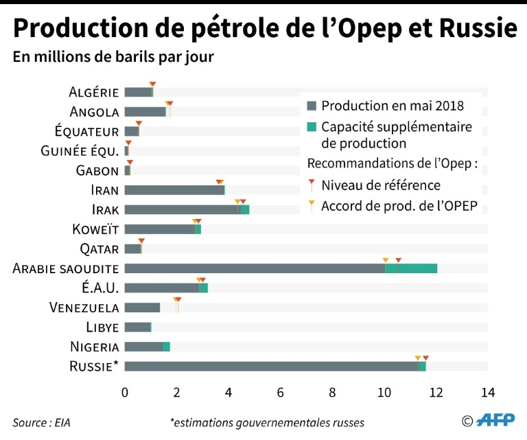 Le compromis doit être validé dans la foulée samedi par les dix partenaires de l'Opep, dont la Russie. Depuis début 2017, les 24 pays de ce groupe représentant plus de la moitié de la production mondiale limite leurs extractions, une mesure qui a contribué à relancer les cours du brut. Mais la hausse du prix de l'essence inquiète dans les plus grandes économies, et le président américain Donald Trump a régulièrement critiqué l'Opep ces dernières semaines, l'accusant de ne pas agir.