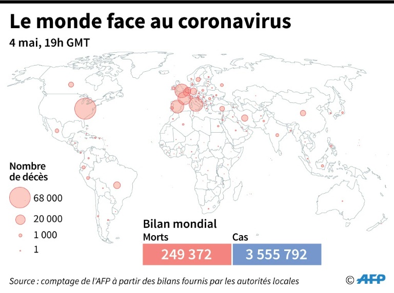 Plus d'un quart de million de personnes ont succombé au nouveau coronavirus depuis son apparition en décembre en Chine, selon un bilan établi par l'AFP, mais le reflux apparent de la pandémie incite de plus en plus de pays, en particulier en Europe, à alléger les restrictions imposées aux populations.