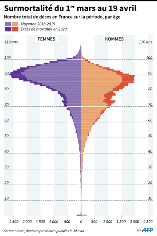 Le coronavirus a causé 135 décès supplémentaires en 24 heures en France, soit un total de 24.895 depuis le 1er mars, a indiqué dimanche la Direction générale de la santé.