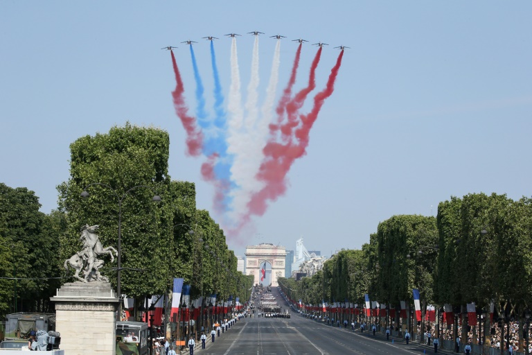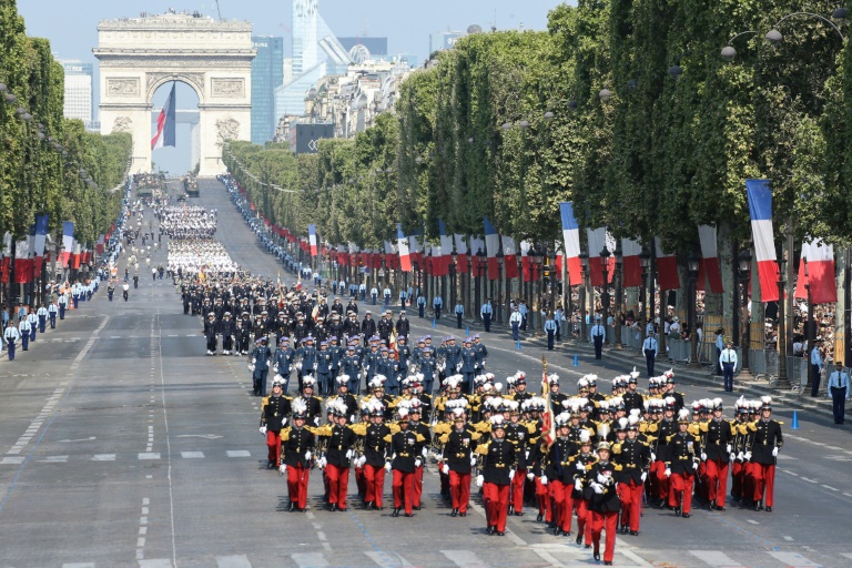 Les armées françaises ont défilé samedi sur les Champs-Elysées devant le président Emmanuel Macron et un public nombreux, comme de tradition pour la fête nationale, à la veille de la finale de la Coupe du monde que les Bleus espèrent remporter.