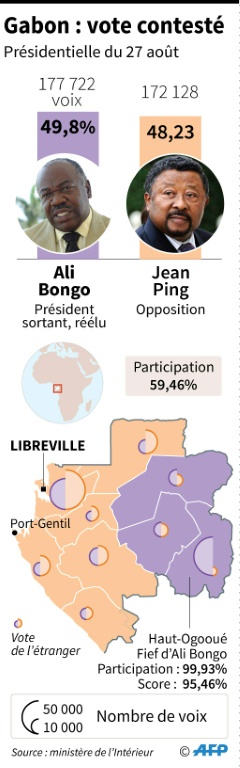 Dans la province du Haut-Ogooué, fief familial de la famille Bongo, le président sortant a officiellement obtenu 95% des voix pour 99% de participation, lui garantissant à l'échelle du pays une avance de quelque 5.000 voix sur Jean Ping, sur un peu plus de 325.000 électeurs, selon les résultats de la commission électorale qui ont mis le feu aux poudres le 31 août.