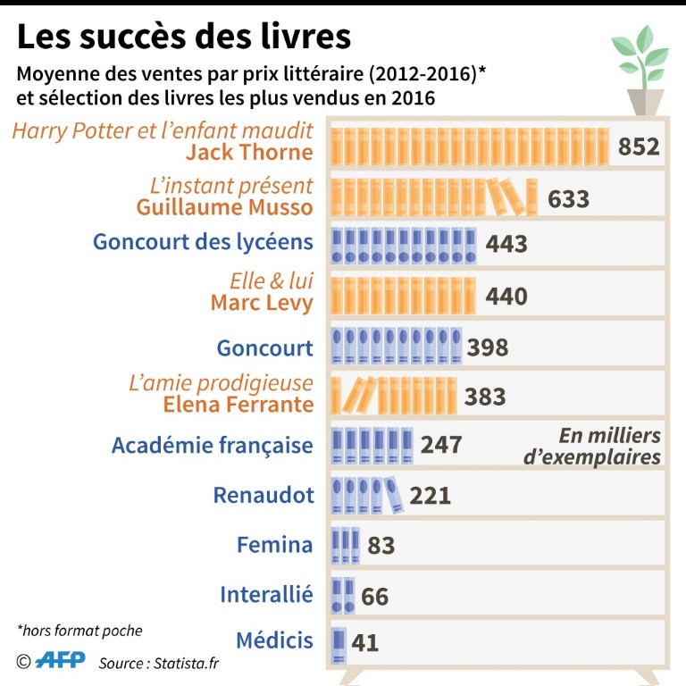 Avec une moyenne de plus de 443.000 exemplaires vendus, le Goncourt des lycéens est ainsi le prix littéraire le plus convoité sur la période 2012-2016, selon une étude de l'institut Gfk. Ce prix devance le Goncourt (environ 400.000 exemplaires), le Renaudot (221.000) ou bien le Femina (83.000).