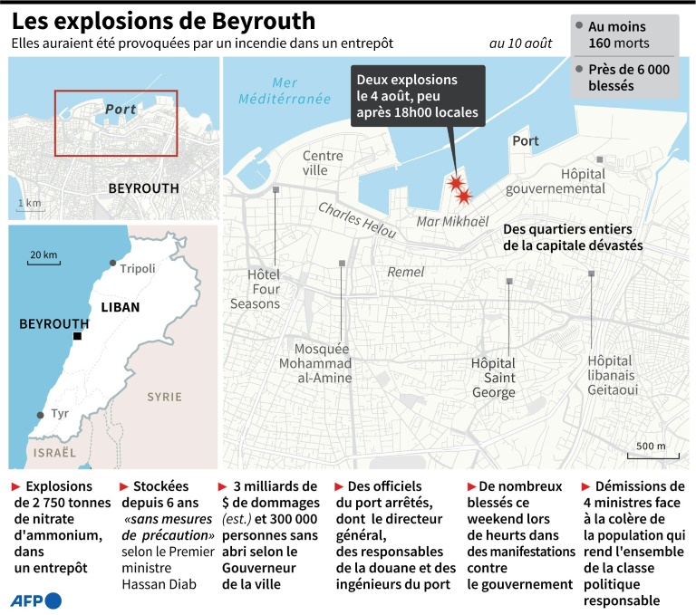 La déflagration gigantesque du 4 août --qui a fait au moins 160 morts et plus de 6.000 blessés-- s'est ajoutée aux souffrances d'une population déjà excédée par une crise économique inédite, aggravée par l'épidémie de Covid-19.