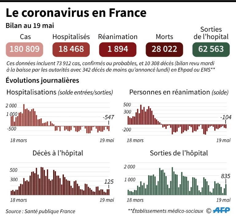 Ce dossier pourrait être évoqué au conseil des ministres qui, autour d'Emmanuel Macron, fera le point sur une situation sanitaire restant fragile, dix jours après le début du déconfinement. "La situation est évolutive. Nous avons un recul lié au délai d'incubation" et donc "il faut rester extrêmement prudent", a affirmé mardi soir le directeur général de la Santé Jérôme Salomon.