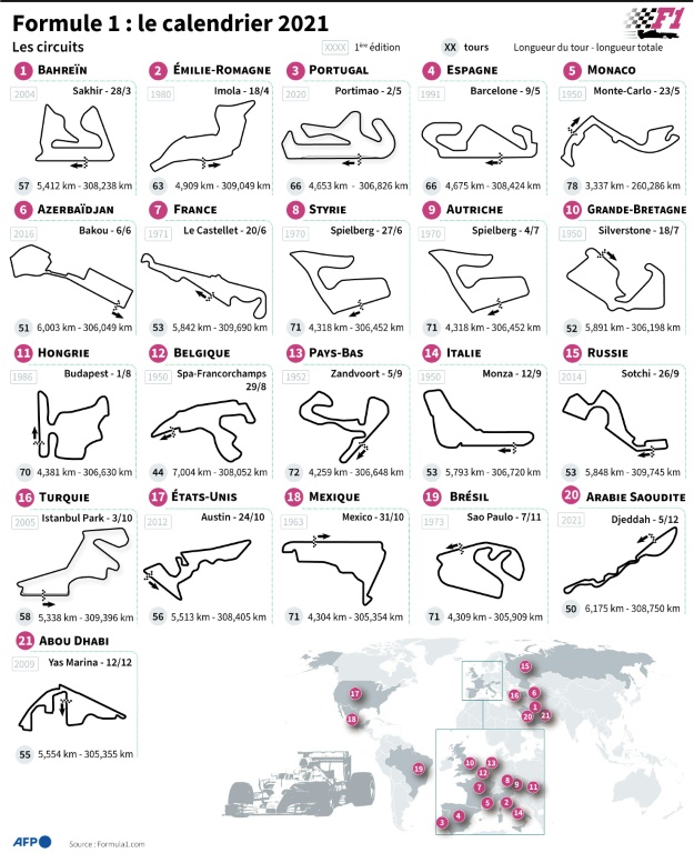 La pandémie, qui a obligé au report ou à l'annulation de la plupart des événements sportifs internationaux en 2020, a également forcé cette année à déprogrammer plusieurs Grands Prix de F1, comme ceux d'Australie, du Canada, de Chine et de Singapour.