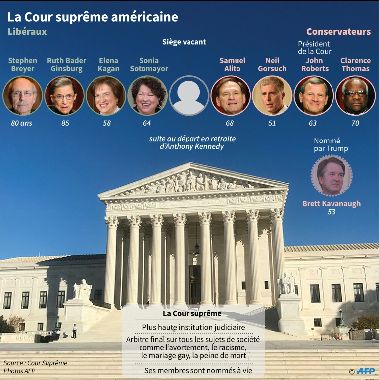 A 53 ans, le juge Kavanaugh va ainsi rejoindre la plus haute juridiction des Etats-Unis, qui vérifie la constitutionnalité des lois et arbitre les conflits les plus délicats de la société américaine (droit à l'avortement, peine de mort, encadrement des armes à feu, mariage homosexuel, protection de l'environnement...).