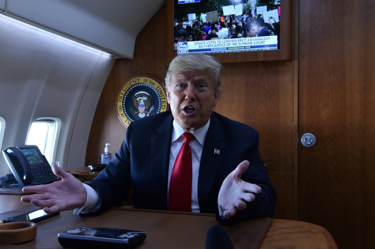 "C'est une soirée historique", a lancé M. Trump lors d'un rassemblement électoral à Topeka, dans le Kansas. "Je me tiens devant vous aujourd'hui après une formidable victoire pour notre nation, pour notre peuple et pour notre Constitution", a déclaré le président sous les acclamations de la foule. Le Sénat a approuvé la nomination du juge Kavanaugh à la Cour suprême à une très courte majorité (50-48), mettant un terme à un processus de confirmation chaotique marqué par des accusations d'agression sexuelle contre le magistrat. "J'applaudis et je félicite le Sénat pour la confirmation de notre formidable candidat", a tweeté M. Trump après le vote.