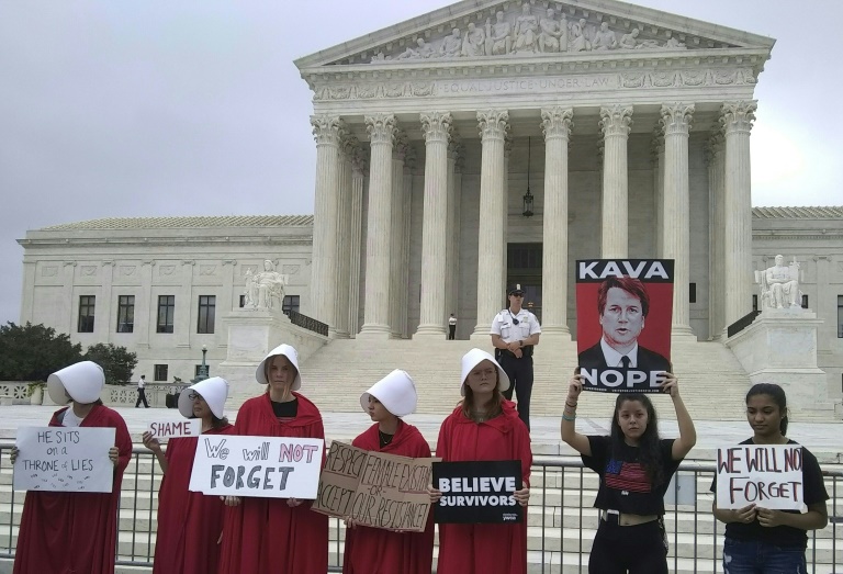 Une poignée de manifestants s'étaient rassemblés devant l'édifice sur la colline du Capitole, pour dénoncer le nouveau juge, confirmé de justesse samedi par le Sénat après une féroce bataille politique. "Nous n'oublierons pas", scandaient ses détracteurs en référence aux accusations d'abus sexuel qui ont failli faire dérailler la nomination du candidat de Donald Trump. Le magistrat conservateur, 53 ans, a vigoureusement nié toute agression.