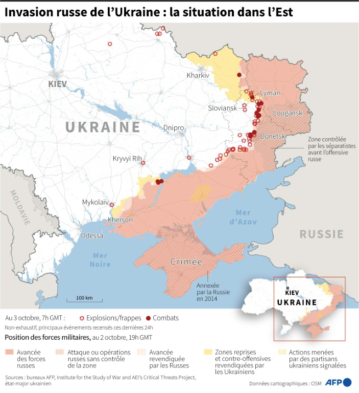 La Russie avait organisé à la hâte dans les quatre régions ukrainiennes de prétendus référendums, largement dénoncés par Kiev et ses alliés occidentaux, à la suite d'une contre-offensive ukrainienne qui a forcé l'armée russe à céder des milliers de km2 de terrain.