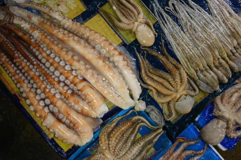 Le marché de Noryangjin, situé au pied d'un quartier du sud de Séoul hérissé de gratte-ciel, est ouvert 24 heures sur 24. Tous les produits de la pêche possibles et imaginables y sont vendus, bien souvent encore frétillants.