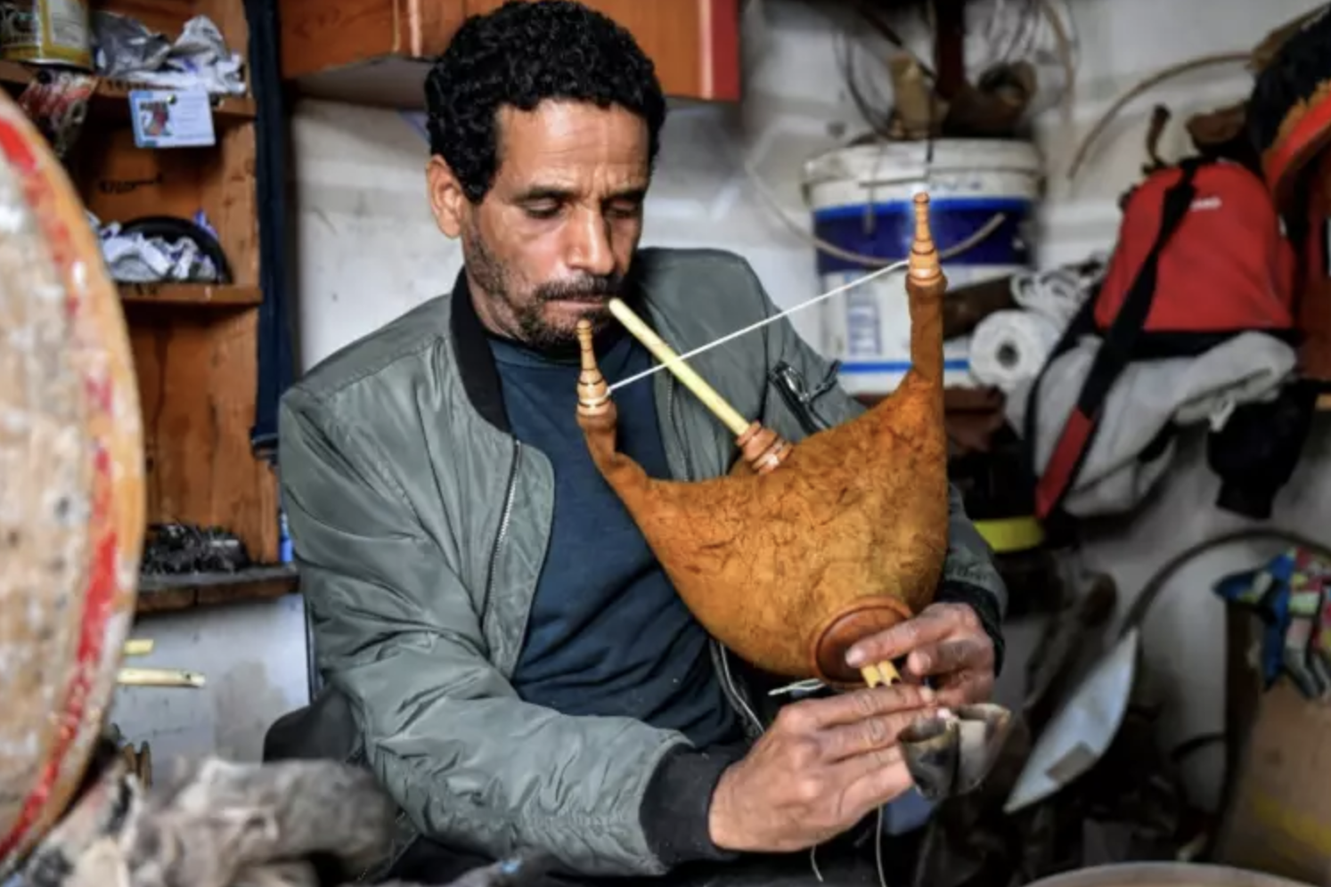 Montassar Jebali joue du mezoued dans plusieurs formations de jazz et hip-hop.
