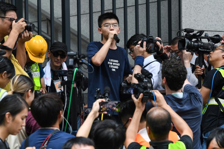 Joshua Wong, 24 ans, est poursuivi avec deux autres dissidents célÚbres, Ivan Lam et Agnes Chow, pour une manifestation devant le quartier général de la police de Hong Kong le 21 juin 2019, une dizaine de jours aprÚs le début de la contestation. "Nous avons tous trois décidé de plaider coupable de tous les chefs d'accusation", a déclaré M. Wong devant les journalistes à son arrivée au tribunal. "Je ne serais pas surpris si j'étais envoyé immédiatement en détention aujourd'hui", a-t-il ajouté. "Nous continuerons à lutter pour la liberté, et ce n'est pas le moment de nous aplatir devant Pékin ni de nous rendre", a poursuivi celui qui avait été en 2014 le visage du "Mouvement des parapluies".