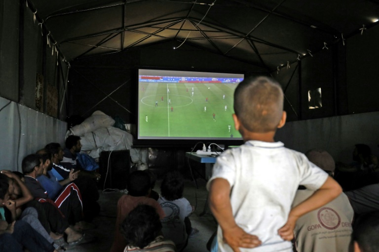 Sous la tente, devenue un repaire, les enfants s'assoient près de leurs pères en suivant les mouvements des silhouettes qui défilent à l'écran. Certains sont équipés d'un oreiller sur lequel ils posent parfois leur tête, tandis que d'autres ont aménagé une chaise de fortune. A l'extérieur, Maabad al-Mohammad, 23 ans, remarque que cette édition de la Coupe du monde arrive à un moment "extrêmement difficile" de sa vie.