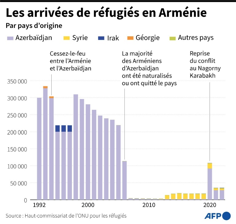 "100.417 personnes" sont maintenant "entrées en Arménie" depuis la capitulation du 20 septembre, selon Nazeli Baghdassarian, la porte-parole du Premier ministre, soit plus de 80% des 120.000 Arméniens qui vivaient officiellement dans l'enclave avant l'offensive azerbaïdjanaise.