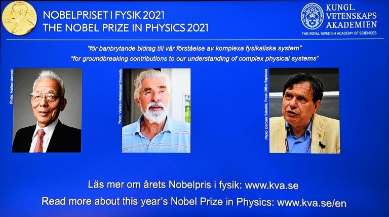 Al Gore et les experts onusiens du GIEC de l'ONU sur le climat avaient remporté le Nobel de la paix en 2007.Si l'autre moitié du prix de physique 2021 n'est pas directement liée au climat, la capacité à comprendre le désordre et les fluctuations est la spécialité du troisième lauréat, Giorgio Parisi, 73 ans et basé à Rome. Ses travaux ardus ont été parmi "les contributions les plus importantes" à la théorie dite des systèmes complexes, a expliqué le jury Nobel, qui l'a récompensé "pour la découverte de l'interaction du désordre et des fluctuations dans les systèmes physiques de l'échelle atomique à planétaire".