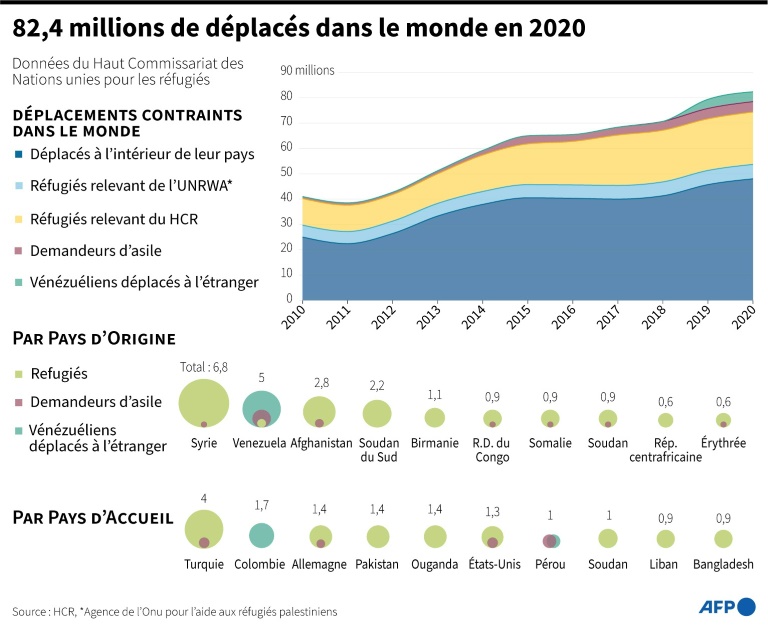 Malgré la pandémie, le nombre de personnes fuyant les guerres, les persécutions et les exactions a atteint un record de 82,4 millions, un chiffre deux plus élevé qu'il y a dix ans, selon l'ONU.