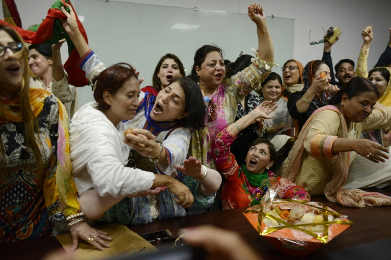 A Peshawar (ouest), des centaines de partisans d'Imran Khan et d'autres partis d'opposition sont descendus en jubilant dans la rue, dansant, jouant du tambour et distribuant des douceurs pour célébrer le jugement, a constaté l'AFP.