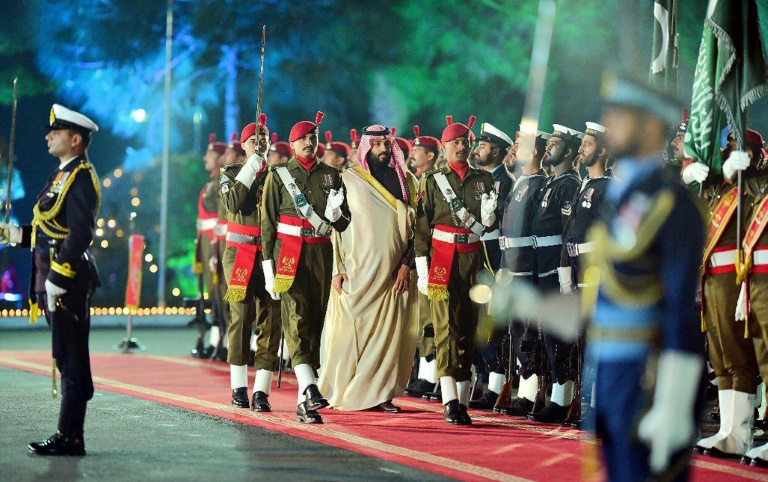 Le prince, dont l'image internationale a été fortement ternie par le scandale provoqué par l'assassinat du journaliste Jamal Khashoggi en octobre dans l'enceinte du consulat saoudien à Istanbul, avait été accueilli dimanche soir avec les honneurs à sa descente d'avion à Islamabad par Imran Khan.