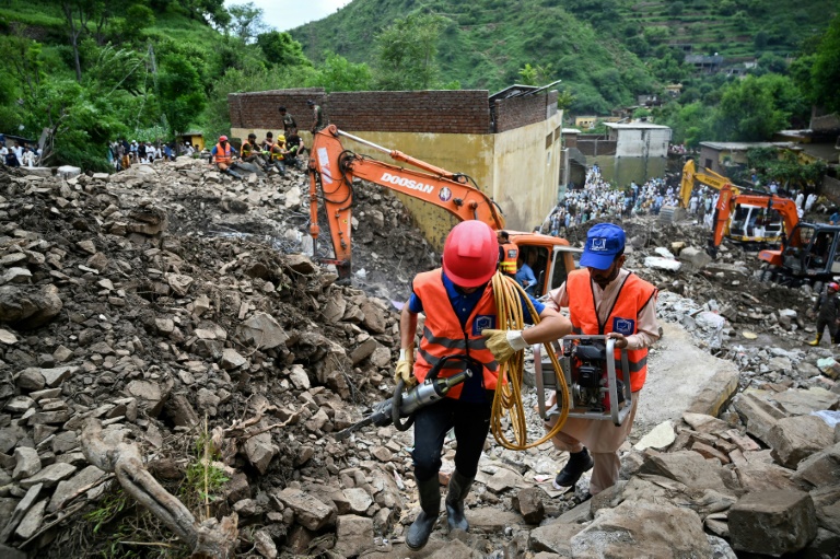 Secouristes et voisins s'activent mardi à extraire les dizaines de corps toujours prisonniers des décombres au Pakistan, où près d'une semaine de pluies torrentielles a fait quasiment 400 morts et où la mousson va encore s'intensifier.