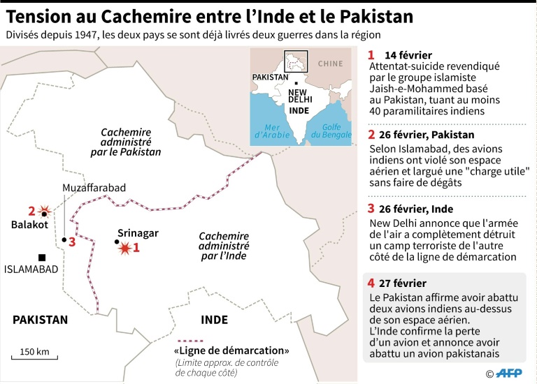 Au Cachemire, l'armée pakistanaise a indiqué être en état d'"alerte élevée pour contrecarrer toute agression indienne" le long de la ligne de cessez-le-feu qui sépare l'Inde du Pakistan.