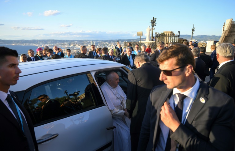 Peu après 15H00 (13H00 GMT), au milieu d'un dispositif de sécurité "hors norme", mobilisant 6.000 membres des forces de l'ordre et un millier d'agents de sécurité privés contractés par les organisateurs, le pape se dirigera vers un autre symbole marseillais très connu, le stade Vélodrome, antre de l'Olympique de Marseille transformé en cathédrale géante le temps d'une messe.