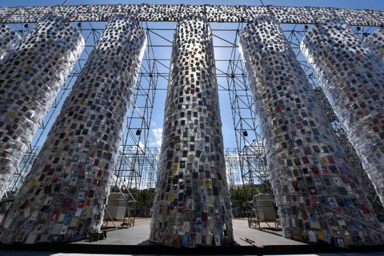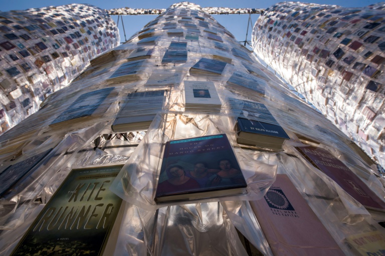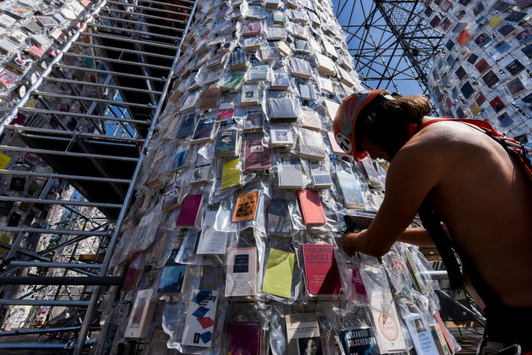 Au final, 170 ouvrages ont été retenus pour former le "Parthénon". L'artiste Marta Minujin, chevelure blonde platine et lunettes de soleil par tous les temps, a elle lancé un appel pour récolter des milliers de copies, notamment du "Da Vinci Code", du "Petit Prince" ou encore des "Fleurs du Mal". Objectif: 100.000 livres.