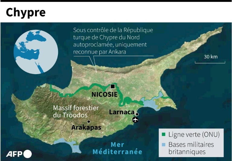 Des bombardiers d'eau ont été envoyés par Israël et la Grèce, alors les forces britanniques stationnées sur deux bases souveraines dans l'île, ont participé aux opérations pour éteindre les flammes.
