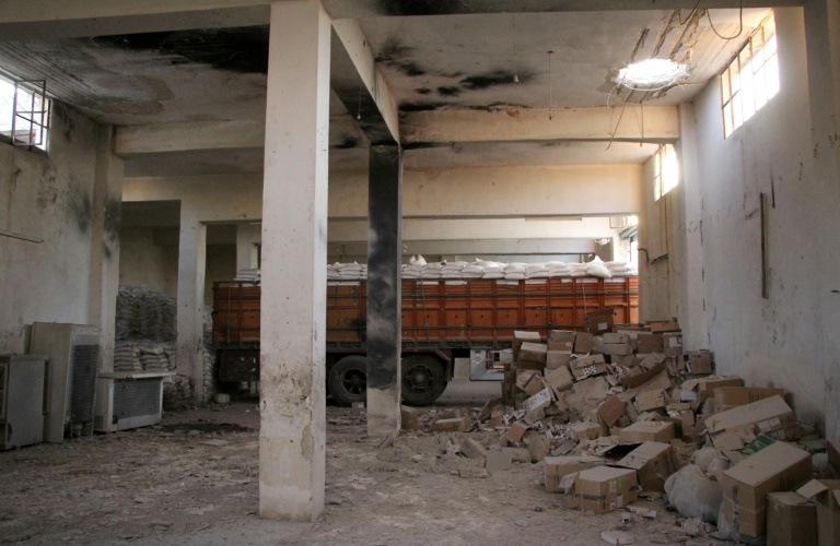 L'entrepôt du Croissant-Rouge syrien et 18 des 31 camions transportant l'assistance ont été brûlés et détruits.