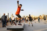 Sur l'aire de jeu fraîchement installée, grâce à des bénévoles étrangers, des apprentis skaters s'élancent à toute vitesse sur les rampes pour réaliser sauts et figures, d'autres discutent joyeusement ou rivalisent de selfies.