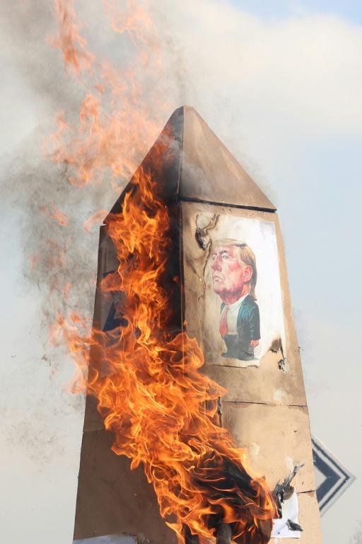 "On ne peut pas faire confiance à l'Amérique!", insiste-t-elle, tandis que des manifestants brandissent des caricatures de Donald Trump et du Premier ministre israélien Benjamin Netanyahu, dont le pays -- non reconnu par Téhéran -- est la bête noire du pouvoir iranien.