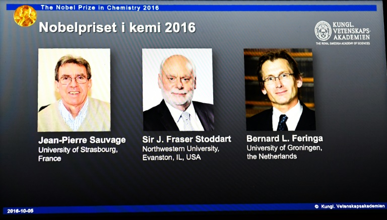 Fraser Stoddart et néerlandais Bernard L. Feringa, pour avoir créé des molécules dont le mouvement peut être contrôlé."Les machines moléculaires seront très probablement utilisées dans le développement d'objets comme les nouveaux matériaux, les capteurs et les sytèmes de stockage d'énergie", a expliqué le jury Nobel.
