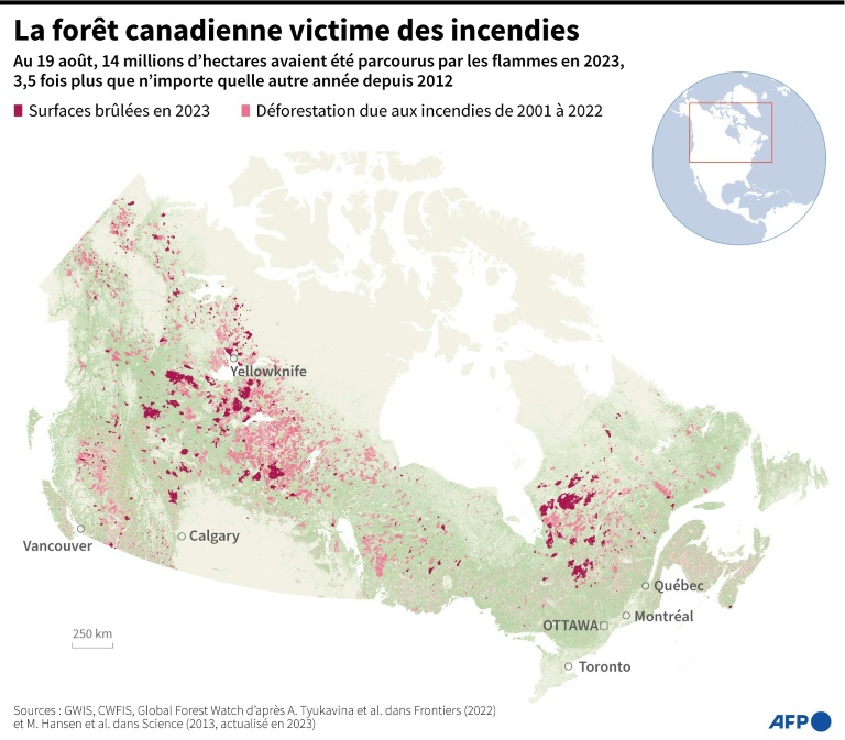 "Le terme +sans précédent+ ne rend pas justice à la gravité des incendies de forêt qui ont ravagé le Canada cette année", a souligné Yan Boulanger. "D'un point de vue scientifique, le doublement du précédent record de superficie brûlée est tout simplement incroyable."