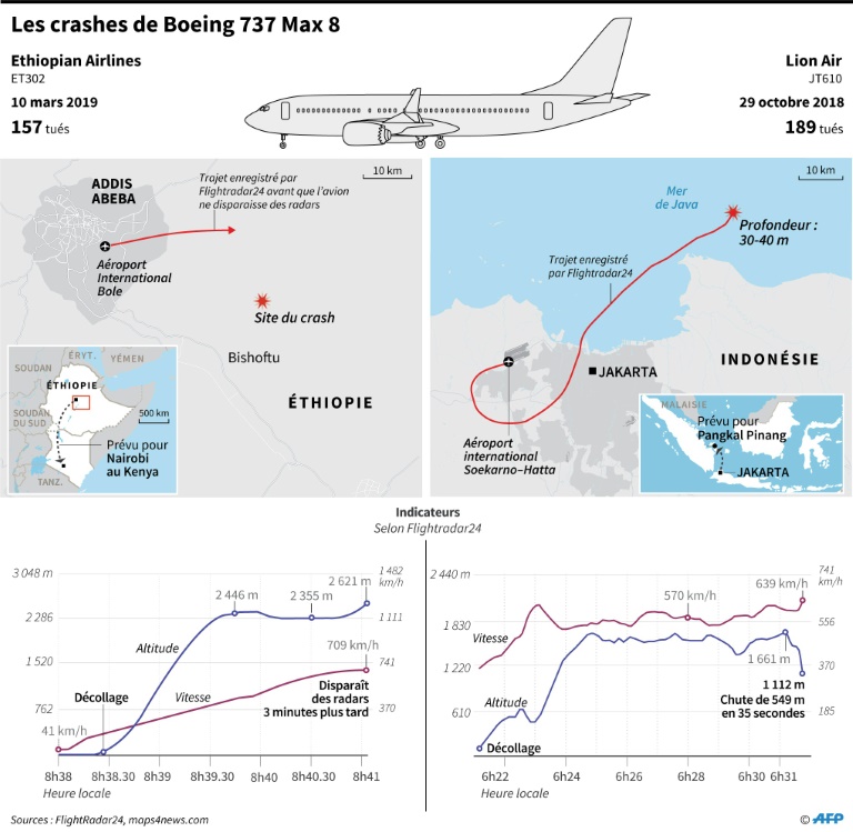 Un 737 MAX 8 de la compagnie indonésienne Lion Air s'était abîmé le 29 octobre en mer de Java tuant 189 personnes avant qu'un même avion d'Ethiopian Airlines ne s'écrase près d'Addis-Abeba le 10 mars, faisant 157 victimes. Le témoignage de Dan Elwell, le responsable par intérim de l'agence fédérale de l'aviation (FAA), est particulièrement attendu alors que l'autorité a été vivement critiquée pour avoir tardé à prendre la décision de suspendre la flotte des MAX après la tragédie d'Ethiopian.